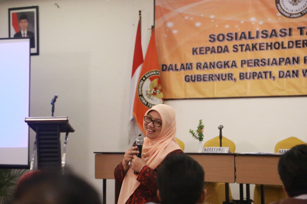 Pimpinan Bawaslu RI, Endang Wihdatiningtyas saat menjadi narasumber pada Sosialisasi Tatap Muka Kepada Stakeholders dan Masyarakat dalam rangka Pemilihan Gubernur, Bupati dan Walikota Tahun 2017 di Kabupaten Pati, Jawa Tengah, Selasa (14/6).