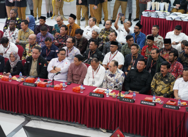 Jakarta, Badan Pengawas Pemilihan Umum- Bawaslu mengawasi melekat jalannya rapat pleno penetapan hasil Pemilu 2024 di Kantor KPU, Jakarta, Rabu (20/3/2024). Hadir lengkap lima pimpinan Bawaslu Rahmat Bagja, Herwyn JH Malonda, Lolly Suhenty, Totok Hariyono, dan Puadi.