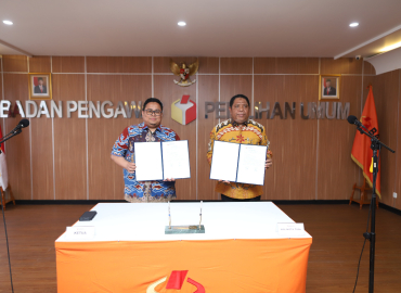Jakarta, Badan Pengawas Pemilihan Umum- Bawaslu mendapatkan hibah aset tanah dari Pemerintah Kota Tual, Provinsi Maluku. Penerimaan hibah ditandai dengan penandatanganan penyerahan sertifikat yang dilakukan Ketua Bawaslu Rahmat Bagja bersama Walikota Tual Adam Rahayaan di Kantor Bawaslu, Jakarta, Selasa (9/5/2023).