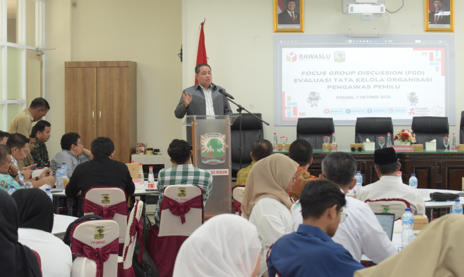 Padang, Badan Pengawas Pemilihan Umum - Bawaslu terus memperkuat tata kelola organisasi pengawasan pemilu agar semakin adaptif terhadap dinamika sistem kepemiluan dan tuntutan publik. Hal tersebut menjadi pokok pembahasan dalam kegiatan Focus Group Discussion (FGD) bertajuk Evaluasi Tata Kelola Organisasi Pengawas Pemilu yang digelar di Padang, Selasa (7/10/2025).