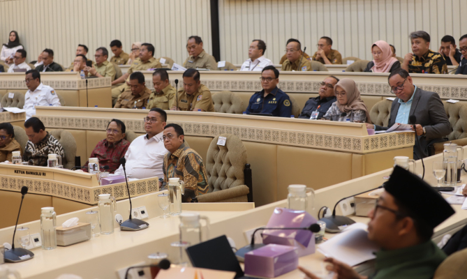 Suasana Rapat Dengar Pendapat (RDP) antara DPR RI bersama Bawaslu, KPU, DKPP, dan Kemendagri pada Senin (5/5/2025).