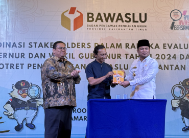 Samarinda, Badan Pengawas Pemilihan Umum- Ketua Bawaslu Rahmat Bagja mengapresiasi kinerja pengawasan pemilu yang dilakukan jajaran Bawaslu Kalimantan Timur (Kaltim) dalam Pemilu dan Pemilihan 2024. Terlebih Bawaslu Kaltim turut meluncurkan buku potret pengawasan pemilu yang berisi perjalanan para pengawas pemilu dalam mengawasi Pemilu dan Pemilihan 2024.