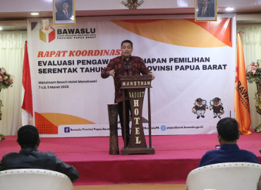 Manokwari, Badan Pengawas Pemilihan Umum – Anggota Bawaslu Republik Indonesia Herwyn JH Malonda menekankan evaluasi penyelenggaraan pengawasan setiap tahapan pemilihan sangat penting untuk meningkatkan kualitas demokrasi di Indonesia. Evaluasi tersebut juga penting untuk memperbaiki tata kelola dan strategi dalam pengawasan agar kepercayaan publik terhadap Bawaslu meningkat