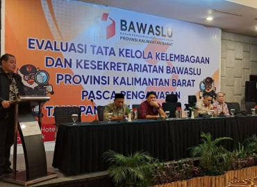 Pontianak, Badan Pengawas Pemilihan Umum Provinsi Kalimantan Barat - Menggelar evaluasi terkait tata kelola kelembagaan dan kesekretariatan Bawaslu Provinsi pasca pengawasan tahapan Pemilihan Tahun 2024, dengan tujuan memperkuat koordinasi dan meningkatkan efektivitas kerja di lingkungan Bawaslu.