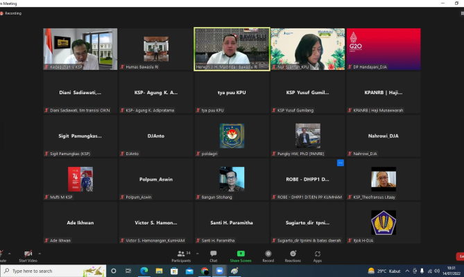 Angggota Bawaslu Herwyn JH Malonda saat mengikuti Rapat Koordinasi terkait Pemilu dan Pilkada di DOB dan IKN, yang digelar Kantor Staf Presiden (KSP) secara daring, Kamis, (14/07/2021).