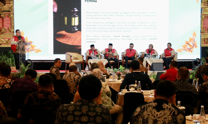 Bagja juga menjelaskan pentingnya redesain sistem penegakan hukum pemilu, termasuk penguatan fungsi quasi peradilan di Bawaslu sebagai bagian dari upaya menciptakan tata kelola pemilu yang adil dan pasti hukum.