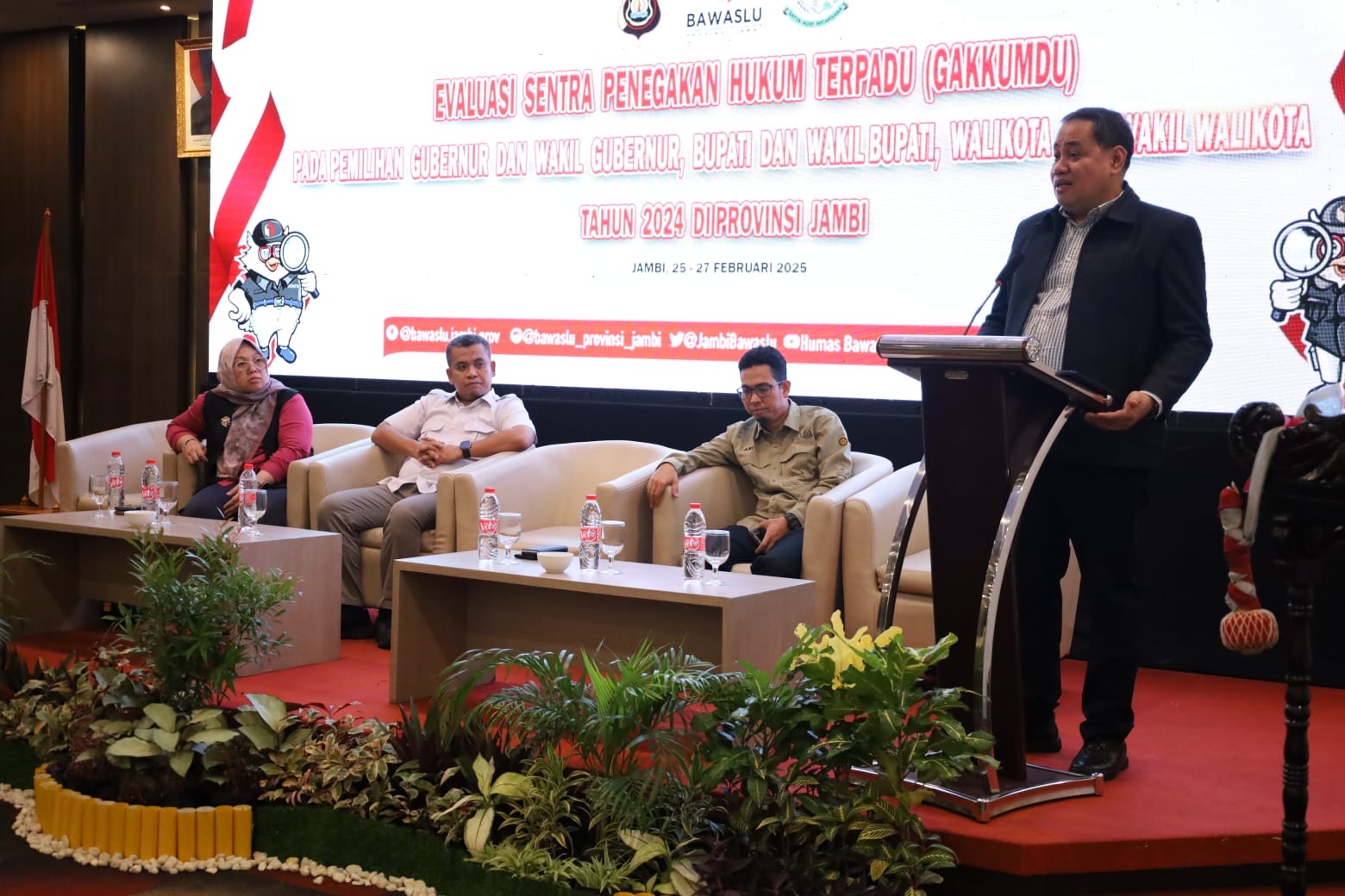 Anggota Bawaslu Herwyn JH Malonda dalam Rapat Evaluasi Sentra Gakkumdu Provinsi Jambi, Rabu, (26/2/2025).