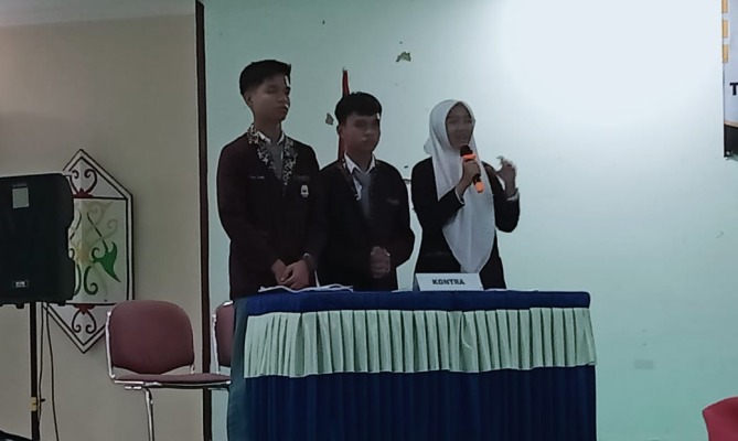 Dua tim yang terdiri dari pelajar sekolah Menengah Atas (SMA) saling memperdebatkan mosi Pemilihan Kepala Daerah (Pilkada) secara tidak langsung di salah satu ruang SMAN 1 Tarakan, Kaltara.