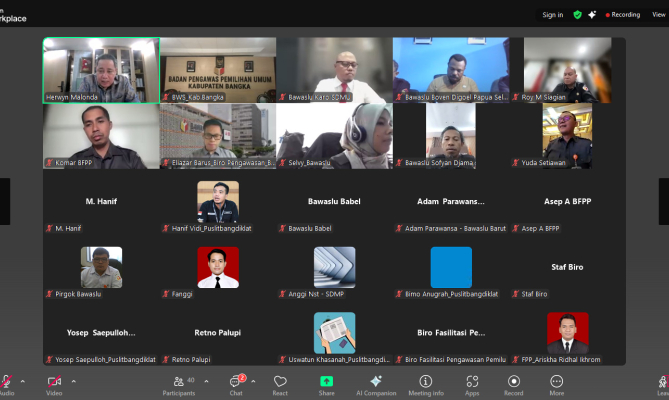 Tangkapan layar Rapat ‘Pemantauan Kesiapan Pelaksanaan PSU dan Pilkada Ulang serta Persiapan Rapat Kegiatan Koordinasi Nasional Bawaslu’ yang dilakukan secara daring pada Senin, (21/7/2025).