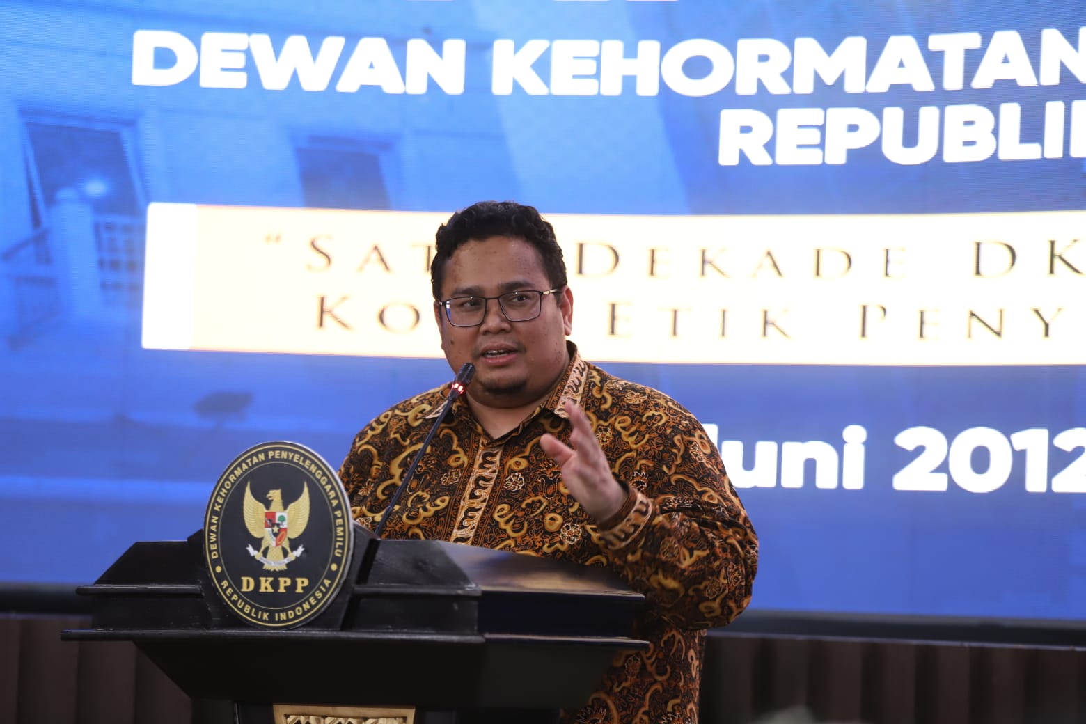 Ketua Bawaslu Rahmat Bagja memberikan pernyataan dalam agenda HUT ke-10 DKPP, di Jakarta, Senin (13/6/2022)./foto: Publikasi dan Pemberitaan Bawaslu.