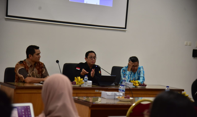 Anggota Puadi saat menjadi narasumber dalam kegiatan Sosialisasi Pengawas Partisipatif, di Gedung Fakultas Hukum, Universitas Gadjah Mada (UGM), Yogyakarta, Rabu (14/9/2023).