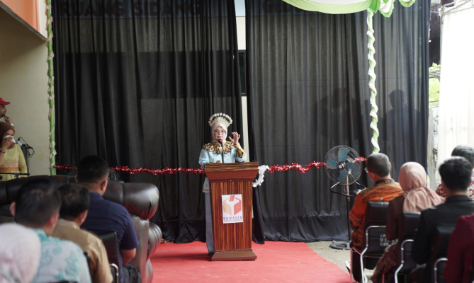 Anggota Bawaslu Lolly Suhenty saat meresmikan ruang sidang di Kantor Bawaslu Kabupaten Gorontalo, Selasa, (25/6/2024).