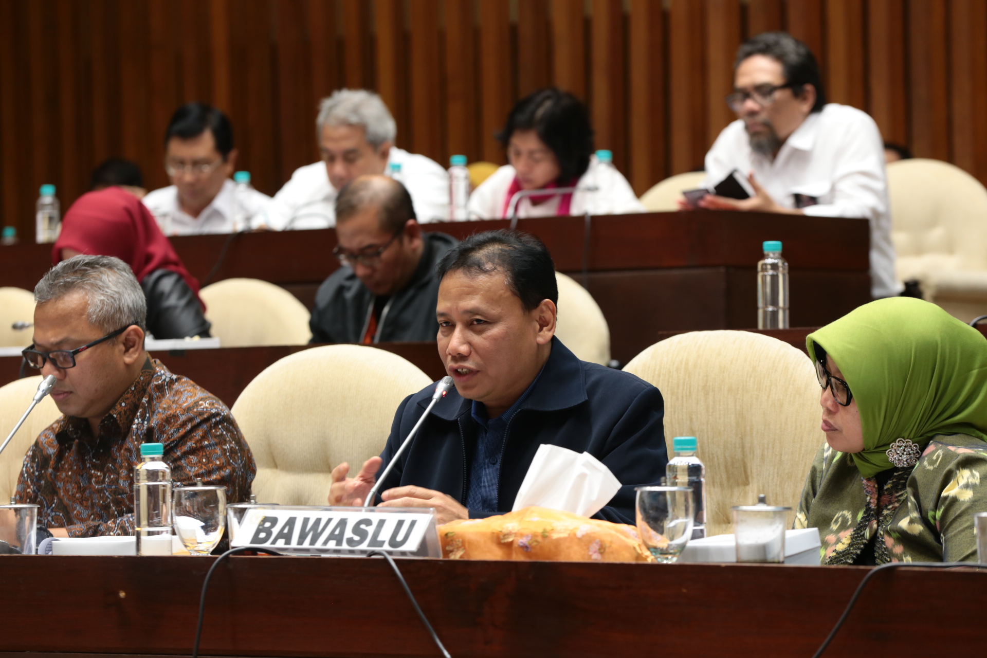 Jakarta, Badan Pengawas Pemilu – Komisi II DPR RI bersama Bawaslu RI dan KPU RI menggelar Rapat Dengar Pendapat (RDP) tentang Persiapan Pemilihan Kepala Daerah Serentak Gelombang III tahun 2018 di Ruang Rapat Komisi II DPR RI, Kompleks Parlemen Senayan, Jakarta, Selasa (25/4). Dalam forum RDP tersebut, Ketua Bawaslu RI Abhan menyampaikan beberapa persiapan yang telah dilakukan Bawaslu menuju Pilkada 2018.