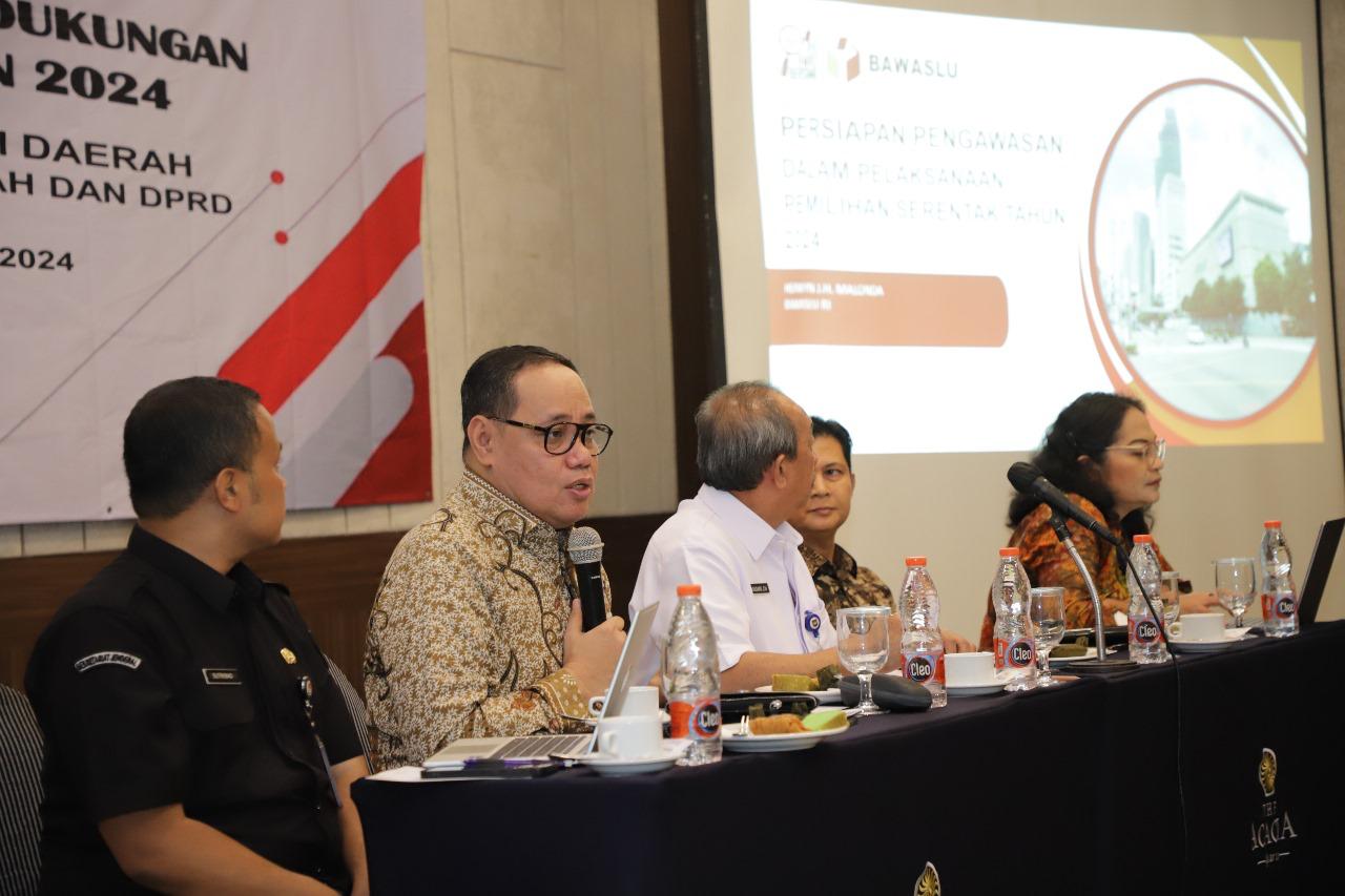 Anggota Bawaslu Herwyn Malonda saat menyampaikan arahan dalam Rapat Dalam Rangka Fasilitasi dan Koordinasi Dukungan Pilkada Serentak 2024, Rabu (5/6/2024).