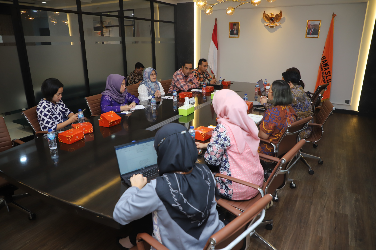 Anggota Bawaslu Lolly Suhenty (tengah, berkemeja putih) saat berdiskusi dengan perwakilan Tiktok Indonesia di Kantor Bawaslu, Jakarta, Jumat (10/02/2023).