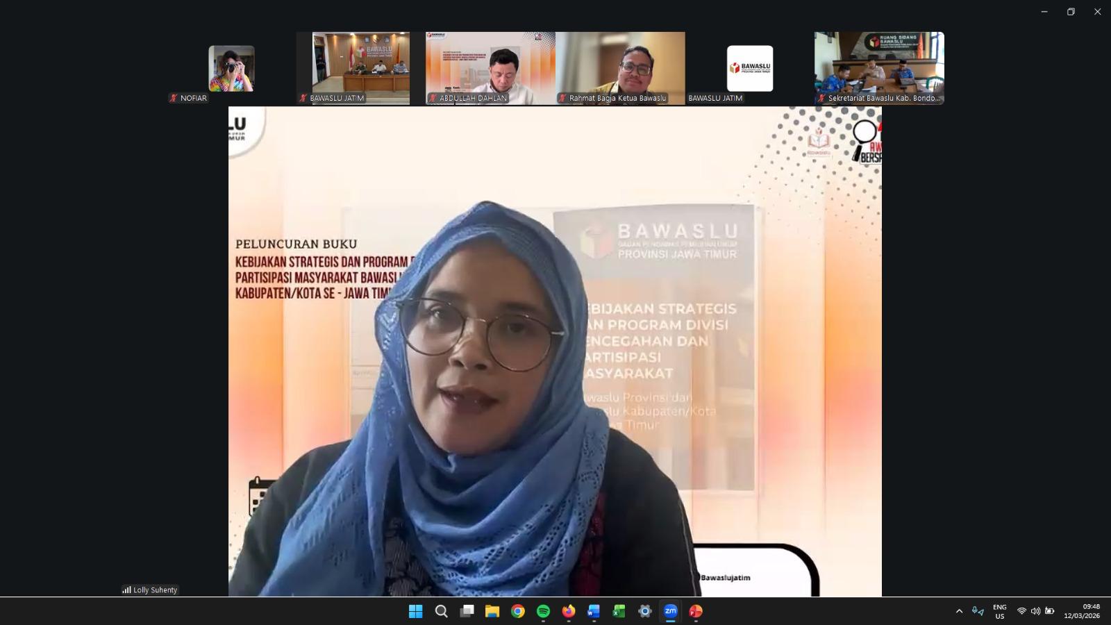 Jakarta, Badan Pengawas Pemilihan Umum - Anggota Bawaslu Lolly Suhenty mengapresiasi inisiatif Bawaslu Provinsi Jawa Timur yang telah menyusun buku Kebijakan Strategis dan Program Divisi Pencegahan dan Partisipasi Masyarakat Bawaslu Provinsi dan Bawaslu Kabupaten/Kota se Jawa Timur. Ia menilai buku tersebut menjadi langkah penting dalam mendokumentasikan pengalaman pengawasan serta memperkaya praktik pencegahan pelanggaran pemilu.