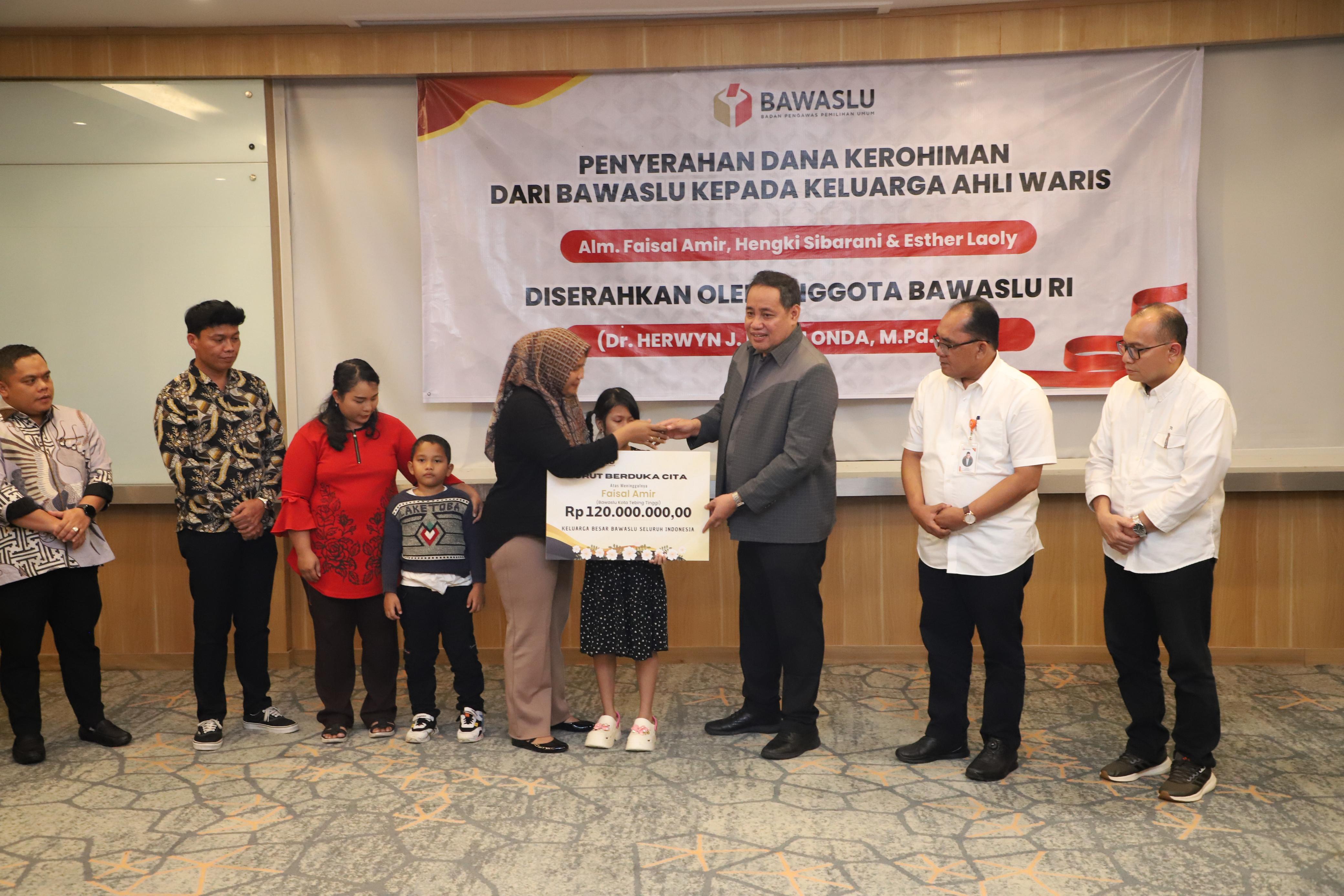 Selain itu, Herwyn menyebut, dana kerohiman tersebut dihimpun dari seluruh jajaran Bawaslu di Indonesia sebagai ungkapan solidaritas dan rasa hormat institusi. Ia menyampaikan bantuan ini bukanlah pengganti nilai kehidupan, tetapi penanda jasa para almarhum tetap diingat oleh keluarga besar Bawaslu. “Santunan ini tidak dapat menggantikan pengorbanan mereka," ungkapnya.