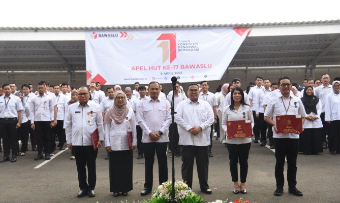 Bawaslu melaksanakan apel dalam rangka merayakan HUT ke-17 Bawaslu