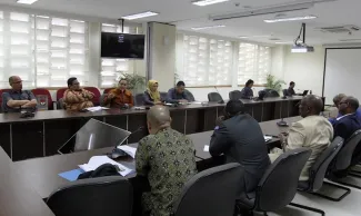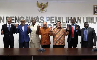 Badan Pengawas Pemilu (Bawaslu) menerima kunjungan delegasi National Electoral Board of Ethiopia (NEBE) atau penyelenggara pemilu Ethiopia di Kantor Bawaslu, Jakarta, Senin (5/6/2017). Kedatangan delegasi Ethiopia tersebut diterima dua Anggota Bawaslu yakni Mochammad Afifuddin dan Rahmat Bagja. Selain dari NEBE, delegasi Ethiopia juga terdiri dari Dewan Perwakilan Rakyat Ethiopia dan The International Institute for Democracy and Electoral Assistance (IDEA). Indonesia merupakan satu dari tiga negara di Asia yang dipilih untuk studi terkait pemilu selain India dan Korea Selatan. Photo: Humas-Nurisman
