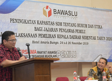 "Jajaran pengawas pemilu harus bisa dan mampu menjaga etika dan hukum, apalagi menghadapi Pilkada 2020 di Provinsi Jambi," ingatnya saat menjadi narasumber kegiatan Peningkatan Kapasitas SDM tentang Hukum dan Etika bagi Jajaran Pengawas Pemilu yang diselenggarakan Bawaslu Jambi, Minggu (24/11) malam.