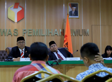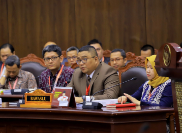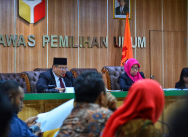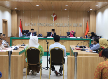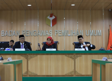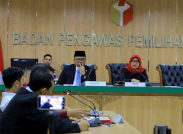 Jakarta, Badan Pengawas Pemilihan Umum - Ketua Majelis Abhan dan Anggota Majelis M Afifuddin melanjutkan sidang laporan dugaan pelanggaran adminitrasi pemilu Nomor 31/LP/PL/ADM/RI/00.00/V/2019 dengan agenda pemeriksaan alat bukti. Dalam perkara pemilihan legislatif (pileg) di Kabupaten Boyolali dan Kabupaten Sukoharjo yang termasuk daerah pemilihan (dapil) V Jawa Tengah (Jateng) calon anggota DPR RI, KPU selaku pihak terlapor menyerahkan empat kardus alat bukti.