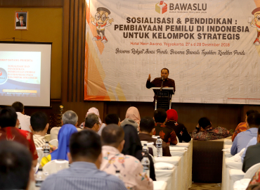 Yogyakarta, Badan Pengawas Pemilihan Umum - Bawaslu memasikan mengawasi laporan penerimaan sumbangan dana kampanye (LPSDK) Pemilu 2019. Hal itu disampaikan oleh anggota Bawaslu RI, Mochammad Afifuddin pada pembukaan peluncuran buku Pembiayaan Pemilu di Indonesia, Yogyakarta, Kamis, (27/12/2018).