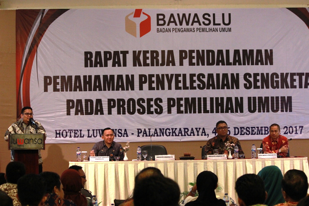 Palangka Raya, Badan Pengawas Pemilu - Dalam rangka memperkaya dan memperdalam pengetahuan tentang tata cara penyelesaian sengketa proses Pemilihan Umum 2019, Bawaslu RI menggelar Rapat Kerja (Raker) Pendalaman, Pemahaman Penyelesaian Sengketa Proses Pemilu 2019, di Palangka Raya, Senin (4/12/17) hingga Rabu (6/12/17).