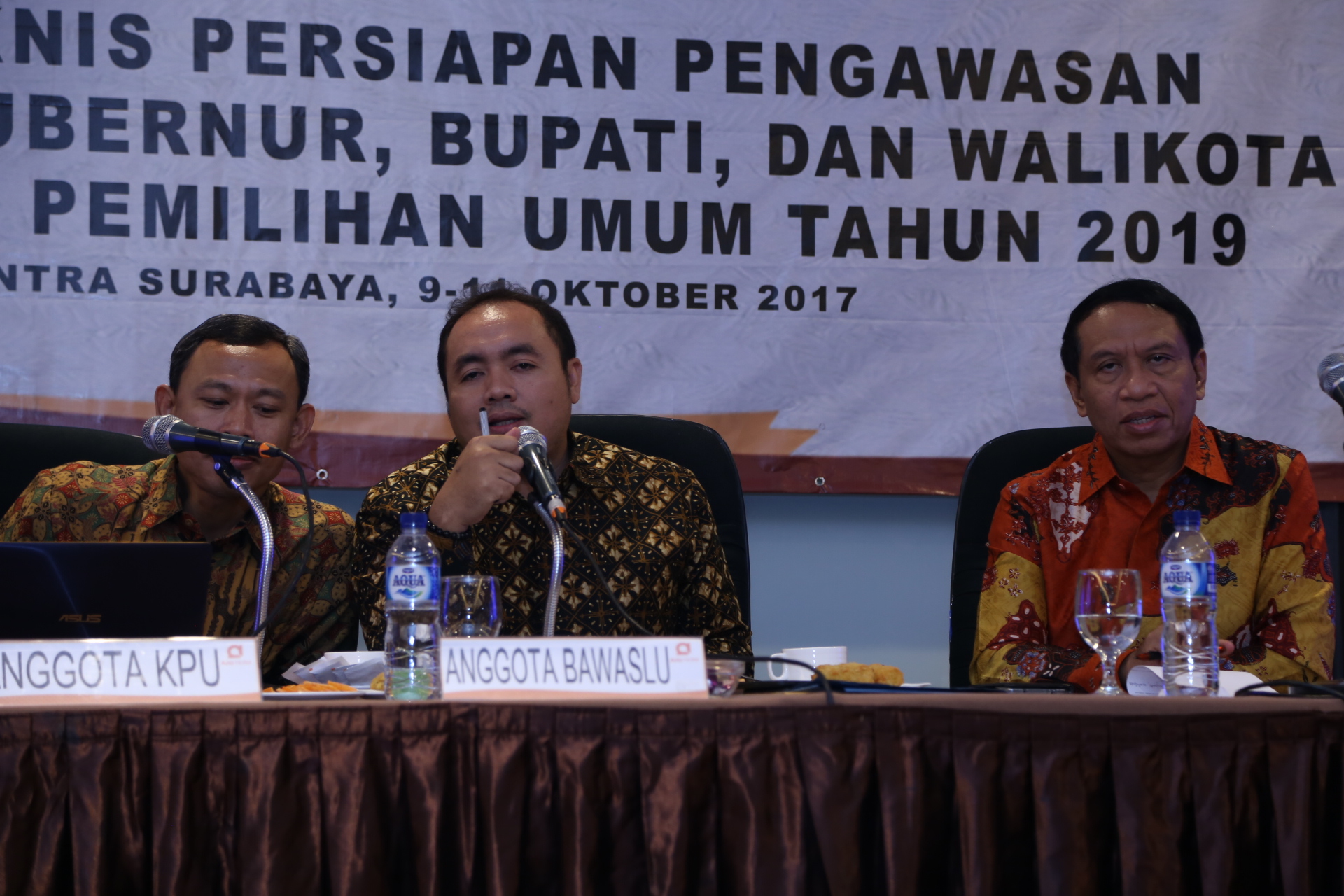 Surabaya, Badan Pengawas Pemilu -Bawaslu RI menggelar Rapat Kerja Teknis (Rakernis) Persiapan Pengawasan dalam Pemilihan Gubernur, Bupati, dan Walikota Tahun 2018, serta Pemilihan Umum Tahun 2019 di Surabaya, Senin (9/10/2017) hingga Selasa (10/10/2017),