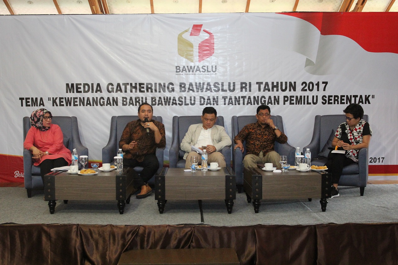 Media gathering yang bertema " Kewenangan Baru Bawaslu dan Tantangan Pemilu Serentak" tersebut merupakan upaya Bawaslu dalam menyamakan persepsi antara Bawaslu dan media massa, menyampaikan informasi terkait kewenangan baru Bawaslu, dan menerima masukan dari media massa maupun stakeholder terkait.