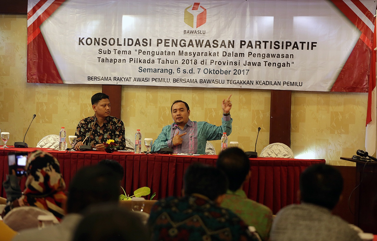 Semarang, Badan Pengawas Pemilu - Anggota Bawaslu, Mochamad Afifuddin menegaskan pihaknya terus mendorong pengawasan partisipatif dan berupaya memperluas kerja sama dengan berbagai stakeholder untuk menjadikan Bawaslu sebagai rumah bersama dalam melakukan pengawasan pemilihan. Salah satu target langkah tersebut, adalah menjadikan kualitas proses pemilihan beriringan dengan kualitas hasil pemilihan.