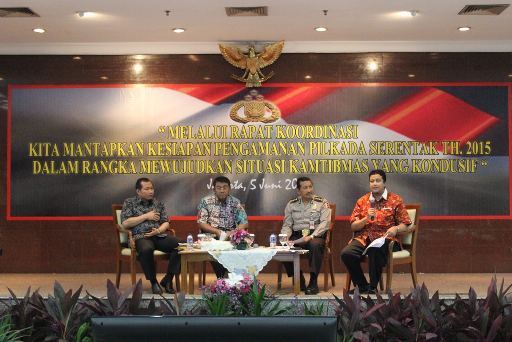 Jakarta, Badan Pengawas Pemilu – Badan Pengawas Pemilihan Umum Republik Indonesia (Bawaslu RI) berharap penanganan pelanggaran pada Pemilihan Gubernur dan Wakil Gubernur, Bupati dan Wakil Bupati, serta Walikota dan Wakil Walikota serentak tahun 2015 berjalan lebih optimal. Khusus untuk pelanggaran pidana, kerjasama dengan Kepolisian dan Kejaksaan Agung yang sudah terbangun melalui Sentra Penanganan Hukum Terpadu (Sentra Gakkumdu) bisa berfungsi lebih maksimal.