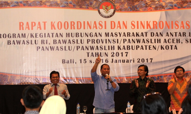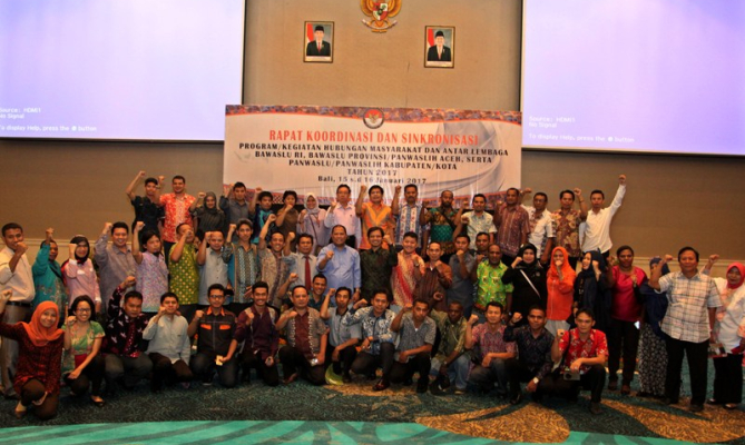 Denpasar,  Badan Pengawas Pemilu – Bawaslu RI mengadakan Rapat Koordinasi dan Sinkronisasi Program Kegiatan Hubungan Masyarakat dan Antar Lembaga (Humas dan Hubal) Bawaslu RI bersam Bawaslu Provinsi, Panwaslih Aceh, dan Panwaslu/Panwaslih Kabupaten/Kota tahun 2017, Minggu (15/01) bertempat di Golden Tulip Hotel, uluwatu Bali mulai tanggal 15 sampai dengan 16 Januari 2017.