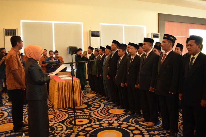 Palu, Bawaslu Sulteng – Bawaslu Provinsi Sulawesi Tengah (Sulteng) melantik 39 anggota Panwas Pemilihan Kabupaten/Kota untuk Pemilihan Gubernur dan Wakil Gubernur, Bupati dan Wakil Bupati, serta Walikota dan Wakil Walikota yang akan menyelenggarakan Pilkada Serentak Desember 2015 mendatang, Kamis (7/5). Acara ini dihadiri oleh Sekretaris Jenderal Bawaslu RI Gunawan Suswantoro dan Gubernur Sulteng H Longki Djanggola. Selain itu juga disaksikan oleh tamu undangan dari kalangan eksekutif dan legislatif, pimpinan lembaga terkait, serta insan pers.