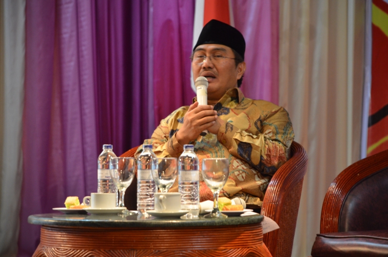 Ketua DKPP RI Prof Jimly Assidiqie ketika menjadi narasumber dalam kegiatan Rapat Koordinasi Stakeholders Dalam Rangka Pendidikan Pengawasan Partisipatif Pemilihan Walikota/Wakil Walikota Medan Tahun 2015 di Hotel Soechi International Medan, Senin (30/11).