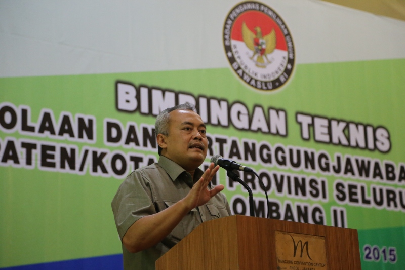 Jakarta, Badan Pengawas Pemilu – Badan Pengawas Pemilu Republik Indonesia melaksanakan Bimbingan Teknis (Bimtek) pengelolaan dan pertanggungjawaban dana hibah Kabupaten/Kota, dan Provinsi seluruh Indonesia gelombang II di Mercure Convention Centre Ancol Jakarta, Kamis (30/7). Sebelumnya Bimtek gelombang I dilaksanakan di Hotel Arya Duta Jakarta beberapa waktu lalu.