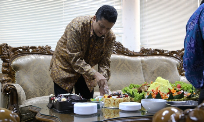 Alunan lagu Selamat Ulang Tahun itu semakin meningkat volumenya ketika beberapa staf membawa kue ulang tahun. Semua yang hadir kompak meminta Pak Ketua meniup lilin di atas kue.