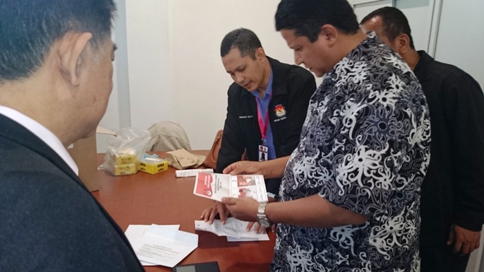 Kuching, Badan Pengawas Pemilu - Ketua Badan Pengawas Pemilu (Bawaslu) Muhammad melaksanakan supervisi,  dalam rangka mengawasi logistik yang akan digunakan untuk Pemilu Presiden dan Wakil Presiden (Pilpres) Tahun 2014 di Konsulat Jenderal RI di Kuching, Malaysia, Jumat (27/6). Pengawasan logistik di daerah yang merupakan perbatasan antara Indonesia dengan Malaysia tersebut, dilakukan untuk memastikan agar logistik Pemilu sudah siap dipakai pada 9 Juli 2014 nanti. Selain itu, kedatangan tim supervisi Bawaslu adalah untuk memastikan agar pemilih yang berada di lintas perbatasan tidak memilih lebih dari sekali, mengingat jadwal pelaksanaan Pemilu Presiden dan Wakil Presiden di luar negeri berbeda dengan di dalam negeri. Pilpres di luar negeri dilaksanakan lebih dahulu, daripada Pilpres yang dilaksanakan di dalam negeri yakni pada 9 Juli 2014. Sebelumnya, ada kekhawatiran terkait dengan potensi mencoblos dua kali, karena berada di daerah perbatasan antara Indonesia dan Malaysia.