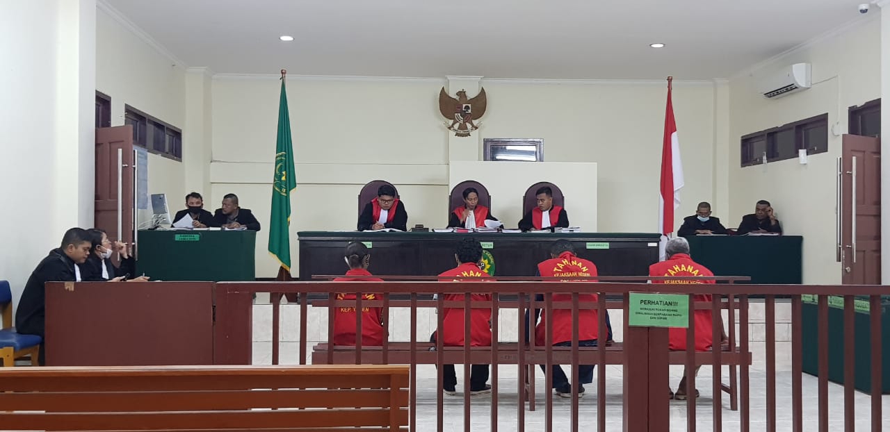 The verdict differed from the prosecutor's claim that Agus Dori, the defendant, was sentenced to 36 months in prison and fined 36 million Rupiah 1 month imprisonment, Dorkas Swakasi, sentenced to 36 months in prison and fined 36 million Rupiah subsider 1 month imprisonment, Simon Hendrikus Rifunai 37 months and a fine of 36 million Rupiah sibsider 2 months imprisonment, and Hermansah with a sentence of 37 months imprisonment and a fine of 36 Million Rupiah subsider 2 months imprisonment.