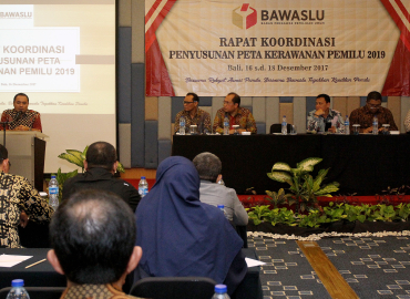 Nusa Dua, Badan Pengawas Pemilu - Bawaslu menggelar kegiatan Rapat Koordinasi Penyusunan Peta Kerawanan Pemilu 2019 dengan mengundang Divisi Pencegahan dan Hubungan Antar Lembaga (PHL) 34 Bawaslu Provinsi se-Indonesia di Bali, Sabtu (16/12/2017). Kegiatan ini dilaksanakan untuk memantapkan persiapan pemetaan kerawanan Pemilu Legislatif dan Pilpres Tahun 2019 mendatang.