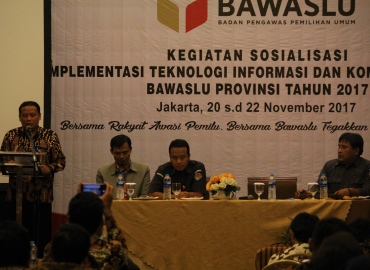 Jakarta, Badan Pengawas Pemilu - Penerapan Teknologi Informasi dan Komunikasi (TIK) di Lingkungan Bawaslu merupakan upaya untuk mengembangkan penyelenggaraan Bawaslu berbasis teknologi dalam rangka meningkatkan transparansi dan kualitas pelayanan publik secara efektif dan efisien. Hal itu disampaikan oleh ketua Bawaslu RI, Abhan, saat membuka acara Kegiatan Sosialisasi Implementasi Teknologi Informasi dan Komunikasi bagi Bawaslu RI dan Bawaslu Provinsi, Senin (20/11/2017) di Jakarta.