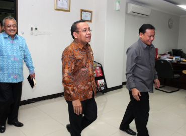 Jakarta, Badan Pengawas Pemilihan Umum - Menteri Sekretaris Negara (Mensesneg) RI Pratikno melakukan kunjungan Bawaslu untuk meninjau kantor Bawaslu. Hal tersebut sebagai tindak lanjut dari permohonan Sekretaris Jenderal Bawaslu Gunawan Suswantoro terkait permintaan penambahan fasilitas kantor.