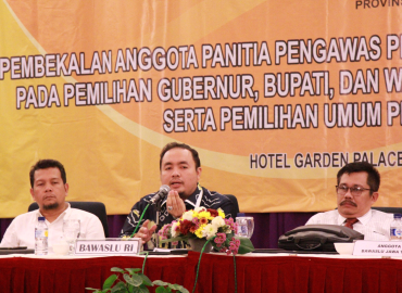 Surabaya, Badan Pengawas Pemilu - Usai dilantik di Gedung Grahadi Surabaya Senin siang (28/8), sebanyak 114 anggota Panitia Pengawas Pemilihan (Panwaslih) se-Provinsi Jawa Timur diberikan pembekalan sebagai sarana pengenalan kelembagaan dan sosialisasi tugas pokok, fungsi dan kewenangan lembaga pengawas pemilu, di Hotel Garden Palace Surabaya.