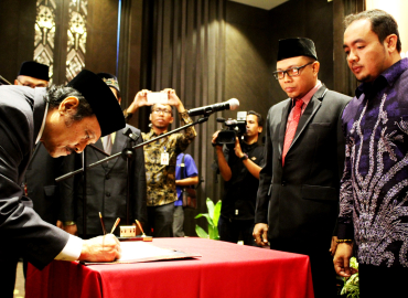 Semarang, Badan Pengawas Pemilu - Ketua Bawaslu Provinsi Juhana mengambil sumpah janji 105 anggota Panitia Pengawas se-Provinsi Jawa Tengah di MG Setos Hotel, Semarang, Jawa Tengah, Jumat 25 Agustus 2017. Juhana mengatakan, partisipasi pendafatar pada perekrutan anggota panwas di 35 Kabupaten/Kota Tahun 2017 tercatat sebanyak 1.183. Hal tersebut berbanding tiga kali lipat lebih banyak jika dibandingkan dengan lima tahun lalu di Tahun 2012 yang hanya tercatat sebanyak 418 pendaftar.