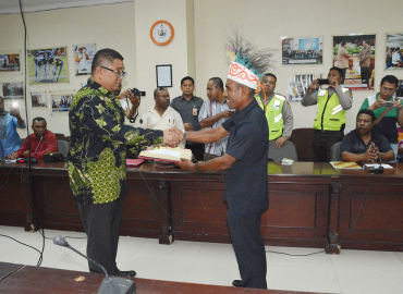 Jakarta, Badan Pengawas Pemilu - Sekitar 50 orang masyarakat dan tokoh adat dari Kabupaten Kepulauan Yapen berunjuk rasa di depan Kantor Bawaslu, Jl. MH Thamrin No. 14 Jakarta Pusat, Selasa (5/9). Unjuk rasa ini dipimpin Absalom Maniani dan Budi May dengan tuntutan meminta Mahkamah Konstitusi (MK) meninjau kembali putusan pada Pilkada Kabupaten Kepulauan Yapen 2017 dan mengusut tuntas dugaan pelanggaran oleh pasangan bupati dan wakil bupati pada Pilkada Kabupaten Yapen periode 2010-2015 dan Pilkada 2017-2022.