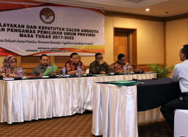 Jakarta, Badan Pengawas Pemilihan Umum - Proses seleksi calon Anggota Bawaslu Provinsi yang tersebar di 25 Provinsi seluruh Indonesia telah memasuki tahap akhir. Dari puluhan hingga ratusan peserta yang sebelumnya mengikuti tes Ujian dengan sistem Computer Asisted Test (CAT), lalu tes kesehatan di tiap-tiap provinsi kini telah memasuki enam besar.