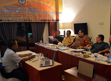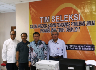 Sidoarjo, Badan Pengawas Pemilu-Anggota Bawaslu RI, Rahmat Bagja dan Mochmmad Afifuddin bersama Ketua dan Anggota Bawaslu Provinsi Jawa Timur Sufyanto S.Ag, Sri Sugeng Pujiatmiko SH serta Andreas Pardede S.iP melakukan uji kelayakan dan Kepatutan lanjutan terhadap calon Panwas Kabupaten/Kota se-Jawa Timur Tahun 2017. Dari 12 Kabupaten/Kota, terdapat 72 orang calon Panwas yang mengikuti proses uji tersebut bergantian mulai tanggal 12 s.d. 15 Agustus 2017 di Hotel Sun City Sidoarjo, Jawa Timur.