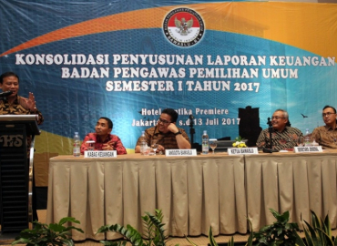 Jakarta, Badan Pengawas Pemilu -Dalam rangka penyusunan Laporan Keuangan Badan Pengawas Pemilu Semester I Tahun 2017 yang transparan, akuntabel dan sesuai dengan standar Akuntasi Pemerintah, Bawaslu RI mengumpulkan seluruh Kepala sekretariat (Kasek) seluruh Indonesia di Hotel Santika Premiere Jakarta, Kegiatan yang dimulai tanggal 11 s.d. 13 Juli Tahun 2017 ini digelar guna mendukung pencapaian target Laporan Keuangan Bawaslu RI berpredikat Wajar Tanpa Pengecualian (WTP).