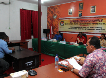 Manokwari, Badan Pengawas Pemilu- Bawaslu Provinsi Papua Barat menggelar uji kelayakan dan kepatutan calon anggota Panwas Kabupaten/Kota se-Papua Barat untuk wilayah I yang terdiri dari Kabupaten Manokwari, Manokwari Selatan, Pegunungan Arfak, Wondamo, Teluk Bintuni dan Fak-Fak. Sebanyak 36 calon Panwas Kabupaten/Kota se-Papua Barat mengikuti test uji kelayakan dan kepatutan tersebut di Kantor Bawaslu Provinsi Papua Barat, Jalan Brawijaya No 3A Manokwari, Minggu (6/8/2017).