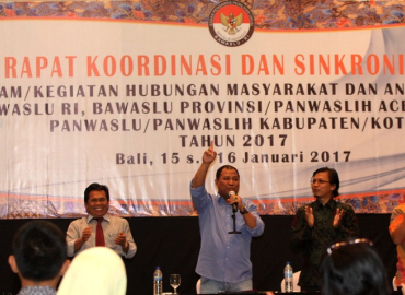 Badung, Badan Pengawas Pemilu – Badan Pengawas Pemilu Republik Indonesia, (Bawaslu RI) mengadakan Rapat Koordinasi dan Sinkronisasi Program Kegiatan Hubungan Masyarakat dan Antar Lembaga Bawaslu RI, Bawaslu Provinsi/ Panwaslih Aceh, serta Panwaslu/ Panwaslih Kabupaten/Kota Tahun 2017, bertempat di Golden Tulip Hotel, Badung, Bali, Minggu (15/1).