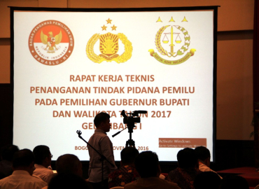 Bogor, Badan Pengawas Pemilu – Menindaklanjuti penandatanganan Peraturan Bersama Sentra Penegakan Hukum Terpadu (Sentra Gakkumdu) pada 21 November silam, Badan Pengawas Pemilu menggelar Rapat Kerja Teknis (Rakernis) Penanganan Tindak Pidana Pemilu pada Pemilihan Gubernur, Bupati dan Walikota Tahun 2017 atau Rakernis Sentra Gakkumdu di Bogor, Jawa Barat. Rakernis ini bertujuan untuk memperkuat pemahaman seluruh unsur yang ada di Sentra Gakkumdu, baik Bawaslu, Kepolisian, maupun Kejaksaan tentang teknis pelaksanaan penanganan tindak pidana pemilu.